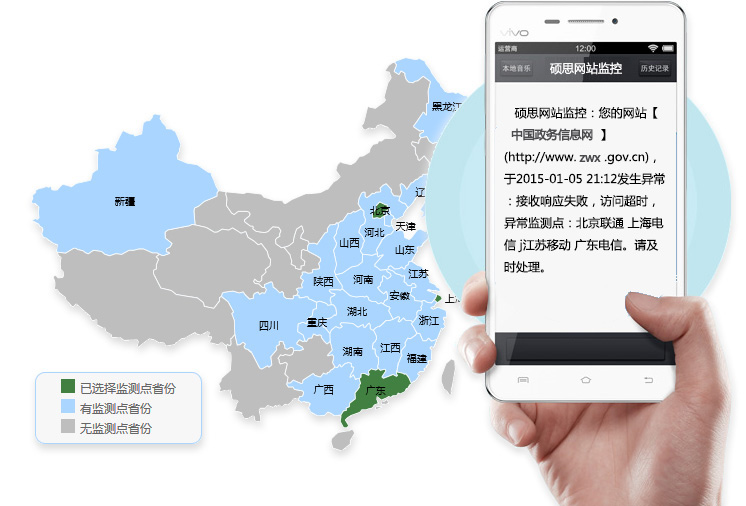 24小时监控网站状况,网站出现无法访问等异常情况以邮件、短信等形式实时通知。网站HTTP监控、服务器监控、PING监控、域名DNS监控等。详情咨询:0898-66611999