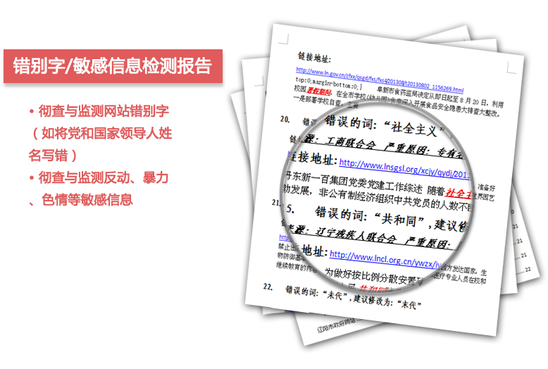 - 彻查与监测网站错别字(如将党和国家领导 人姓名写错)