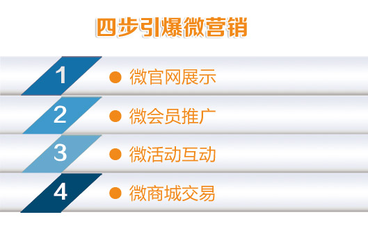 借助8亿微信用户的巨大商机,通过展示、推广、互动、成交四步,引爆移动互联网的营销新渠道,让您的订单成倍增加 详情咨询:400-8168-664